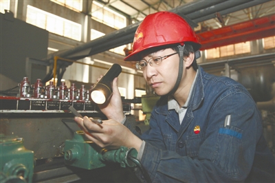 4月18日,记者找到37岁的李永翔时,他正带领工友奋战在装置大检修现场,一手油污,满头大汗。