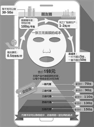 近日,有关“朋友圈三无面膜被曝光,微商虚假财富神话被戳破”的新闻频繁进入公众视野,“朋友圈面膜”一时成了热搜词。
