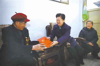 近几年来,省总认真贯彻省委、省政府“四个尊重”座谈会精神,选树了“全国最美职工”吴吉林这一新时期产业工人重大典型;推动省政府下发了《关于进一步改善劳动模范待遇的通知》,加强了劳模疗休养工作;在做好评先树优常规工作的基础上,首次开展了“齐鲁金牌职工”评选,用劳模精神感召职工、引领社会。图为省人大常委会副主任、省总工会主席尹慧敏到劳模家走访慰问。