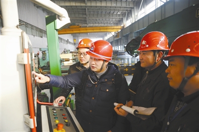 省总举全会之力,在全省组织开展了“查身边隐患、保职工安全、促企业发展”活动,推动建立健全群众性安全隐患排查治理长效机制。集中活动期间,全省96.6%的建会企业参与活动,组织职工查出安全隐患82万项,整改77万项。全总召开现场会推广了山东省的工作经验。这项活动的深入开展,对全省安全事故起数、死亡人数实现“双下降”起到了重要促进作用。图为生产一线职工进行隐患排查。