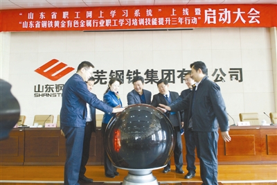 4月9日,“山东省职工网上学习系统”上线启动大会在莱钢举行。省总号召全省广大职工自觉践行“全员学习、全面学习、终身学习”等理念,主动成为“工作学习化、学习工作化”的倡导者和实践者。系统包括闯关练兵、培训平台等6个子模块,收录试题28万多道,覆盖90多个主要生产工种,为广大职工搭建了学习成才和技能提升的崭新平台。