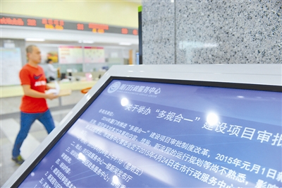 5月7日,一位男士在厦门市行政服务中心“多规合一”项目审批大厅内走过。