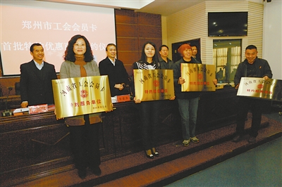 目前,郑州职工服务网已建成运营,首批12万张工会会员卡发放到位,已有20家工会会员卡特约优惠商家与郑州市总正式签定合作协议。到今年6月底,郑州市各级工会洽谈签约商家将达到200家,届时可为广大工会会员提供包括医疗保健、教育培训、法律援助、旅游休闲、餐饮住宿、家政服务、日常消费等多方面的优惠服务,进而让以“工会组织,依托基层,整合资源,创新管理”为原则的社会化大帮扶格局在郑州日益完善。