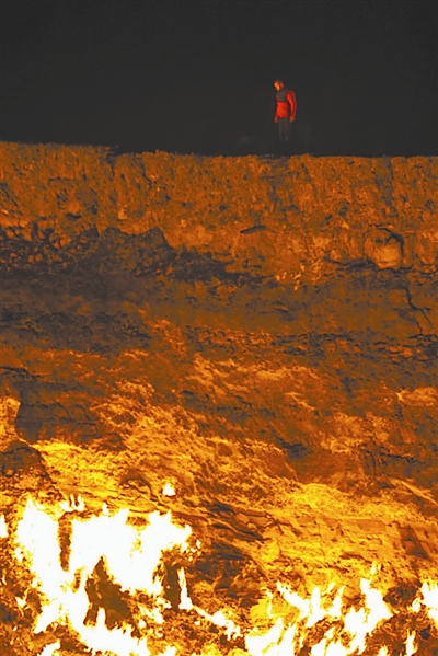 据外媒5月6日报道,44岁的世界著名冒险家乔治·库洛尼斯日前参与了人类首次进入被称为“地狱之门”的土库曼斯坦火焰坑探险之旅。他冒着超过1000摄氏度的高温,下降100英尺(30.48 米)进入这个满是火苗的大坑,并在坑内行走。这一奇异地点的官方名称叫做“达瓦札天然气火山口(The Darvaza Crater)”。苏联科学家于1971在这里发现了丰富的地下天然气,却由于在开采时发生事故,苏方不得不将天然气点燃,以期烧光所有的天然气,但大火至今已经连续燃烧了40余年未灭。