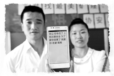 近日,安徽淮北矿业袁庄矿寻找“最美矿嫂”活动启动,旨在让更多关注丈夫安全、关爱丈夫健康、关心丈夫生活的好矿嫂,在矿区靓起来、红起来、美起来,推动安全协管工作开展。图为5月5日,好矿嫂、掘进二区职工韩亮的妻子葛稚在展示为丈夫发送的安全短信。