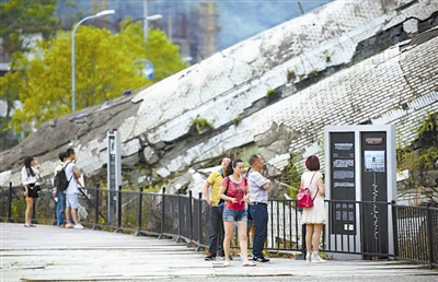 在“5·12”汶川特大地震七周年前夕,很多人来到四川省北川老县城地震遗址参观,悼念遇难同胞。 新华社记者 薛玉斌 摄