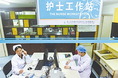 5月11日,高彬琳(右)在护士服务站工作。新华社记者 杜宇 摄