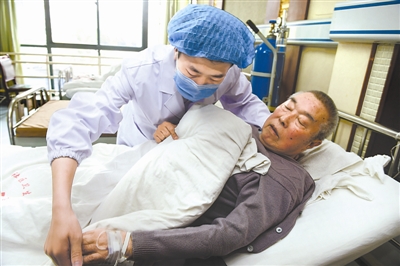 5月11日,高彬琳在病房中帮助长期卧床的病人翻身。 新华社记者 杜宇 摄