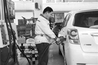 5月12日,我国汽、柴油价格每吨分别提高255元和245元,测算到零售价格90号汽油和0号柴油(全国平均)每升分别提高0.19元和0.21元,这也是中国成品油价首次迎来年内“三连涨”。图为山西太原一加油站工作人员正在给汽车加油。