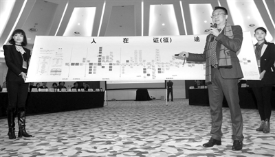 2014年2月19日,广州市政协各界别委员代表座谈会上,委员曹志伟展出一幅“人在证(征)途”长卷,并称人一生要办的证件有400多个。CFP供图