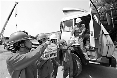 日前,钻井四公司40486队员工正将书籍送到赶赴东北市场的车上。