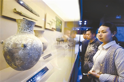 5月18日,观众在安徽省亳州博物馆里参观。