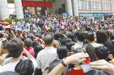 昆明一民办初中招生考试场外“盛景”。CFP供图