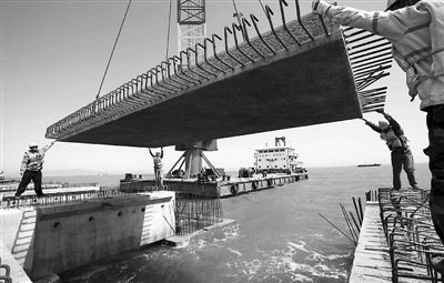 5月20日,施工人员正在连云港港徐圩港区二港池多用途泊位二期工程现场施工。