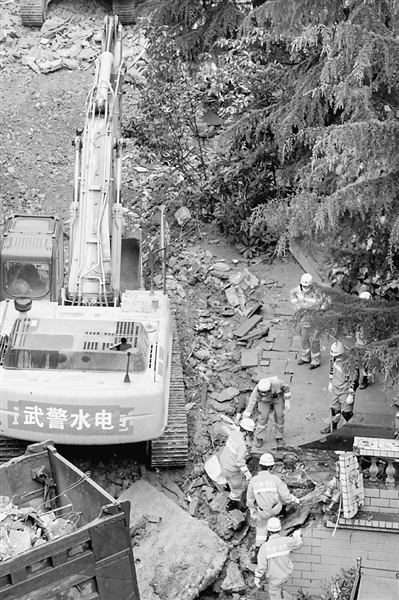 5月22日,救援人员在事故现场抢险救援。当日,贵州贵阳垮塌楼现场救援工作继续进行。截至记者发稿时,已发现10具遇难者遗体,仍有6人失联。新华社记者 欧东衢 摄