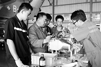 近日,南航珠海直升机分公司完成了S92直升机B-7117主减承重梁改装任务,这是亚洲首例。技师们将铝合金的B-7117改为钛合金,承重强度及安全性能都大大提高。徐树雄 摄