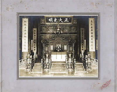③1917年,张勋复辟期间,溥仪坐在乾清宫龙椅上。