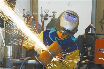 图为王晨宇正在进行焊接训练。何晓斌 摄