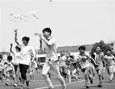 当日,安徽省亳州职业技术学院邀请谯城区牛集镇安溜小学50多名留守儿童来到大学校园,开展“放飞梦想迎六一”主题活动。大学生与孩子们一起进行了各种趣味游戏,让孩子们提前过了一个开心的“六一”儿童节。