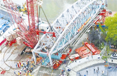 5月29日,上海苏州河上的浙江路桥进行移桥大修。