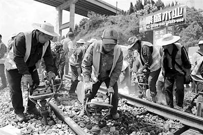 为确保铁路运输畅通,担任线路养护任务的绵阳工务段加大对线路的巡查和整治力度,及时组织各生产班组鏖战高温,消除各类安全隐患。