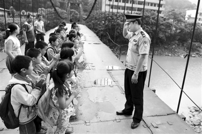 图1:民警讲授过吊桥的安全知识受到小学生欢迎。
