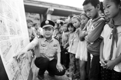 图2:一名民警在向小学生们讲授安全知识。