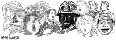 吟诗呐喊声 书法、漫画:李法明