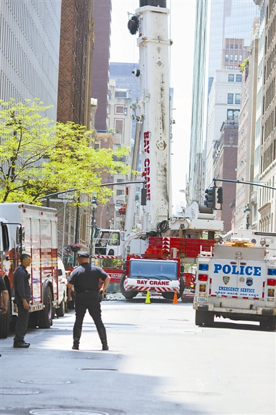 5月31日,在美国纽约,警察在发生事故的建筑工地附近执勤。