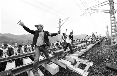 5月29日,担负(西安—南京)增建二线陕西境内任务的中铁一局集团新运工程有限公司宁西二线项目部,在工期紧、任务重、有线施工困难多的情况下,精心组织,合理安排,对陕西商洛砚川车站进行了站改施工。700多名参建员工在长200米的施工区域内,分4个作业点同时施工。图为施工现场。