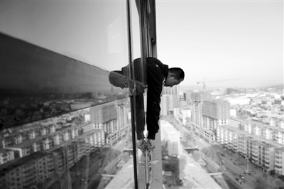 朱孝林干高楼清洗工作已有10年之久。“这一行钱多,但很累很危险,不过时间久了积累下经验,就好多了。”明知这个职业很危险,但是朱孝林依然“不离不弃”。“家中有老有小都要花钱,而且这个职业,既能赚钱过日子,又能美化城市,我觉得很有价值。”
