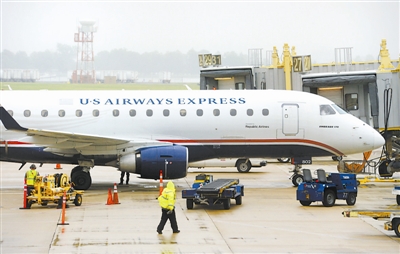 6月2日,在美国华盛顿里根机场,一架全美航空公司的客机停在停机坪上。