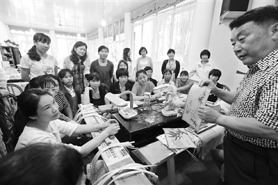 6月3日,在四川省眉山市青神县的国际竹艺城培训基地,国家级非遗代表性传承人陈云华(右)在课堂上评点学员编制的作品。江西省吉安市万安县为充分利用当地丰富的竹资源帮助农村妇女脱贫致富,组织全县24名村妇女主任代表,参加为期45天的竹编技能学习培训,希望她们学有所成后带动当地妇女发展竹编产业。