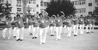 日前,离退休女职工在跳健身舞。关爱离退休职工身心健康,积极打造老年人健康乐园,是中铁十八局集团一公司工会工作的一项着力点。工会组织在强化基地园区文体活动硬件设施基础上,还引导和组织开展适合离退休职工的各种文体活动,既锻炼身体,又陶冶性情。李永旺 谷振伟 摄