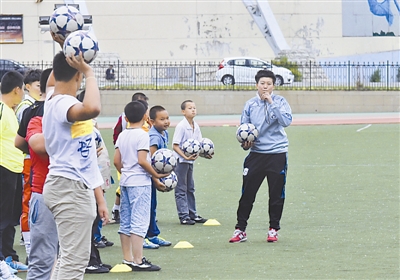 “让孩子们体验到职业足球的味道”——29岁的退役女足国脚娄晓旭(右)最近在长春创办了自己的青少年俱乐部,她的理念是让孩子们在专业训练中爱上足球。