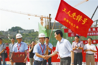 贵阳市总工会党组书记、副主席严贵钧为贵阳市工人先锋号获得单位授牌