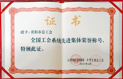 2013年,荣获贵州省唯一的全国工会系统先进集体……