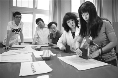 6月9日,观众在工作人员的指导下对档案进行裱糊。在“国际档案馆日”暨北京市第七届“档案馆日”来临之际,由北京市档案馆组织的“档案与你相伴”主题活动在当日启动。在活动现场,观众们可以在档案馆的技术保护复制处体验档案修裱工作。