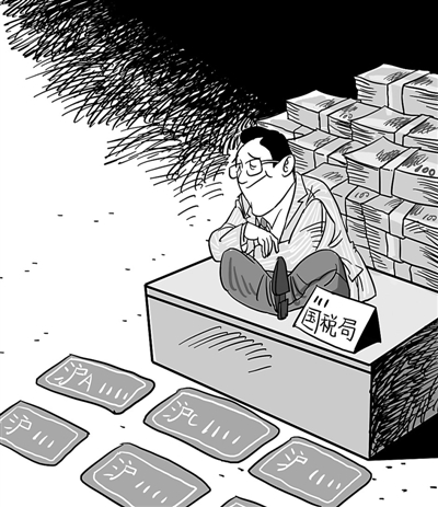 据上海实施私车额度拍卖(俗称“车牌拍卖”)11年了,近日上海市某中级人民法院审理的一起刑事案件,曝光了几乎与上海“拍牌”相伴始终的内外勾结、违法发放车牌的黑幕——据《上海商报》报道,2005年1月至2014年3月间,上海市某国税局原科员傅某等人,通过在车辆购置税完税证明上偷盖真章或涂改、拼接等多种手段,骗取私车额度,致使5000张“内鬼车牌”汽车上街,非法获利2.2亿元。