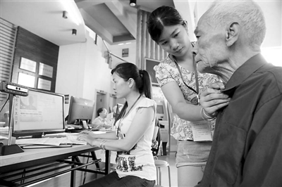 6月16日,工作人员在广西南宁市西乡塘区大学东路社区,准备为79岁的辛迺福老人采集脸模。广西从2014年开始在柳州、北海试点采用“人脸识别”技术开展养老保险资格认证,并从今年起在广西全面推开。至2017年前,有望实现全覆盖。届时,离退休人员可足不出户实现网上认证,养老金领取将全面进入“刷脸”时代。 新华社记者 周华 摄