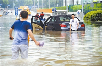6月17日,上海遭遇特大暴雨,部分街区、路段积水严重。CFP供图