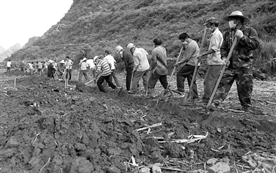 6月17日,在广西大化瑶族自治县六也乡加司村,工作人员开始挖掘填埋点。