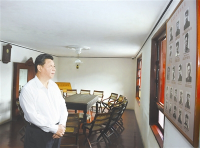6月16日下午,习近平在参观遵义会议会议室时,向墙上的遵义会议参加人员照片深情凝视。