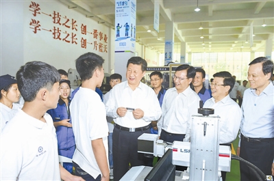 6月17日下午,习近平在贵州省机械工业学校实训基地勉励学生加强操作训练、不断取得优异成绩。