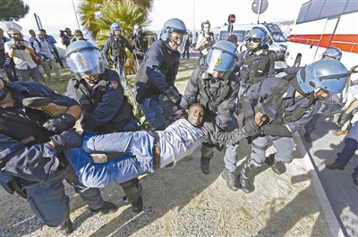 据报道,法国方面对这批非法移民严加防范,拒绝他们进入法国境内。从本月11日开始,法国加强边境检查,当这些人越境进入法国小城蒙顿时,被边防警察拦下并遣返回意大利一侧。除法国外,奥地利和瑞士等国也加强边境管控,拒绝非法移民入境,并把入境者“还给”意大利。意大利则疲于应付,警察用大巴强行转移非法移民来清理文蒂米利亚边境。许多非法移民举着标志牌,试图抵抗警方的强制行为。