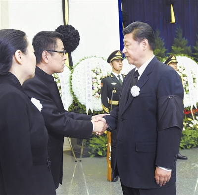 习近平李克强张德江俞正声刘云山王岐山胡锦涛等到八宝山革命公墓送别。江泽民在外地送花圈表示哀悼
