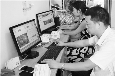 6月19日,南水北调中线工程核心水源区湖北省十堰市郧阳区柳陂镇挖断岗村移民郝天志、胡敏华夫妻正在家里从淘宝网上将有机水果和有机蔬菜卖到北京市和广州市。