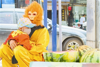 近日,在安徽省合肥市红星路街头,出现了一名孙悟空打扮的卖瓜人。他叫朱克良,是来自安徽蚌埠的一名普通市民,也是一名6岁白血病患儿的父亲。