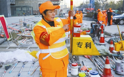 环卫工展示自己的发明专利。CFP供图