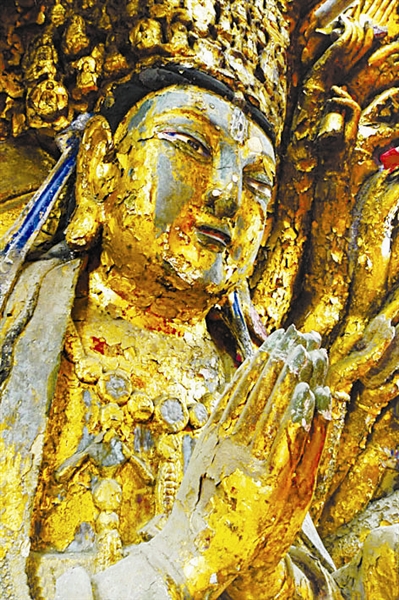 800余岁的千手观音造像如同进入衰老期的病人,出现了岩体风化、金箔脱落、手指断裂等严重病症。给这位病入膏肓的患者进行全面“体检”,刻不容缓。